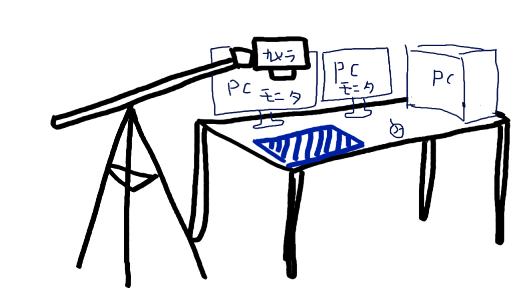 そして以下の画像が自分のガンプラ制作動画撮影環境です。(と思ったのですが、部屋が汚いのでイラスト説明します。。。)